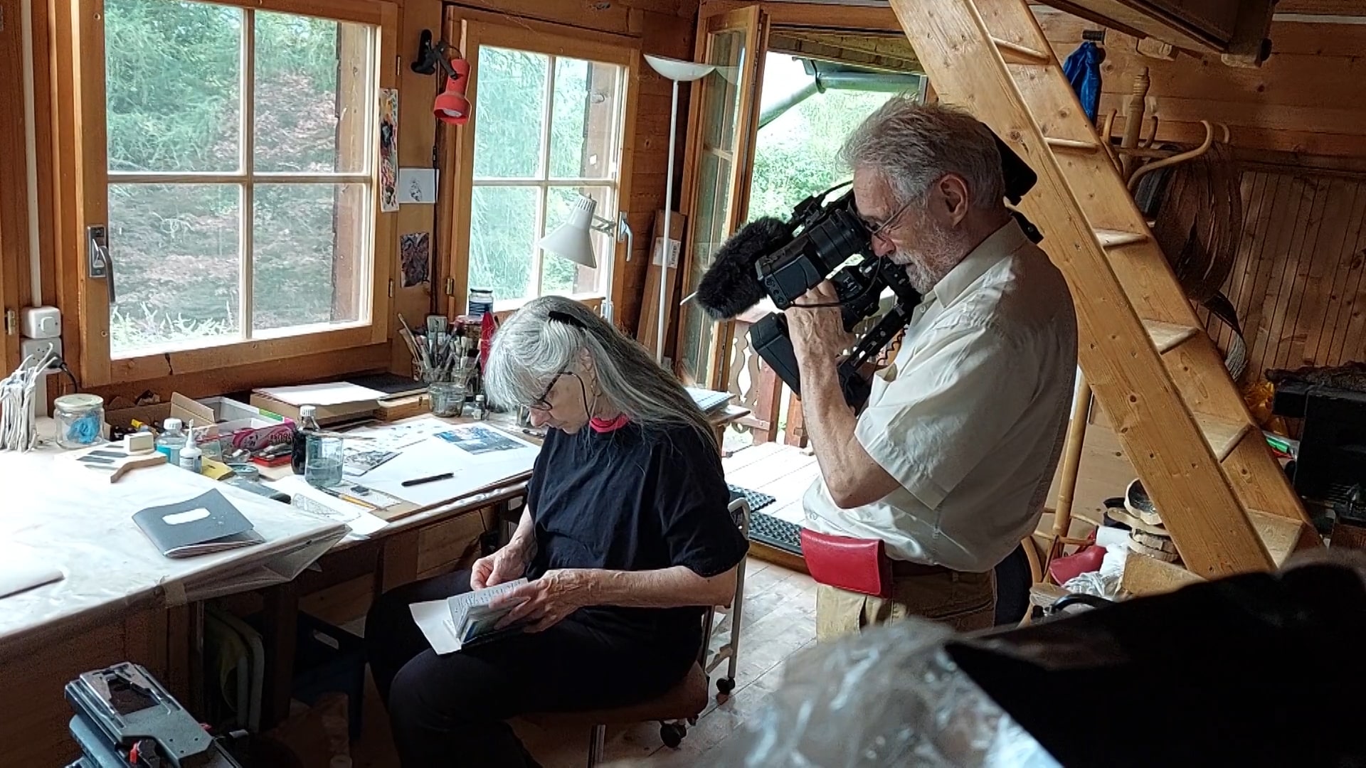 Depuis juin 2024, Christian Berrut a suivi la préparation des expositions du Jura 2025, d’abord à l’atelier de Vérossaz et les forêts alentour puis, le premier jour du montage ainsi qu’au vernissage à l’Espace culturel de Condor à Courfaivre le 19 août 2025.